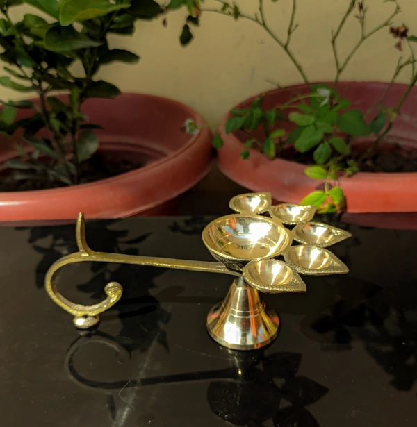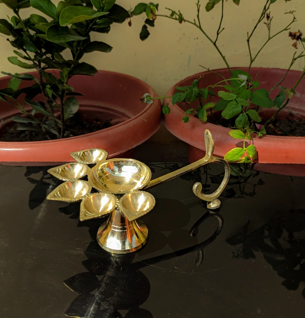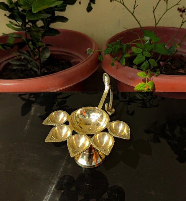 - Package Contents:- Set of 1 Pcs, 5 Face Panch Arti Diya, Brass