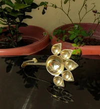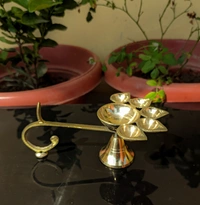 - Pooja Diya Oil Lamp Panch aarti Jyoti Puja Diya, Stand With Handle Aarti Diya .