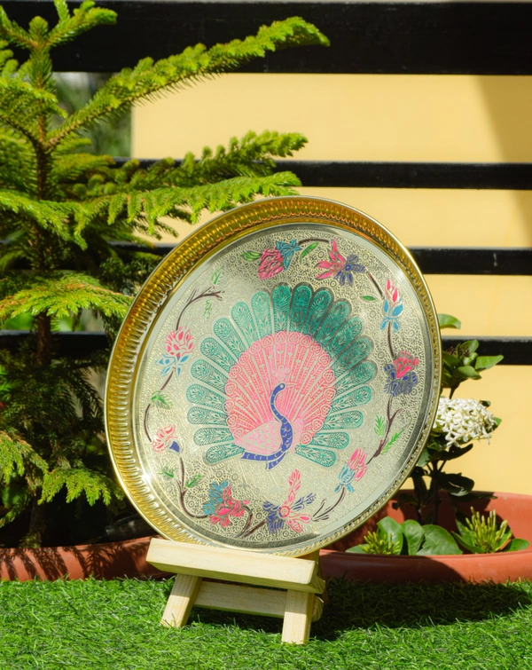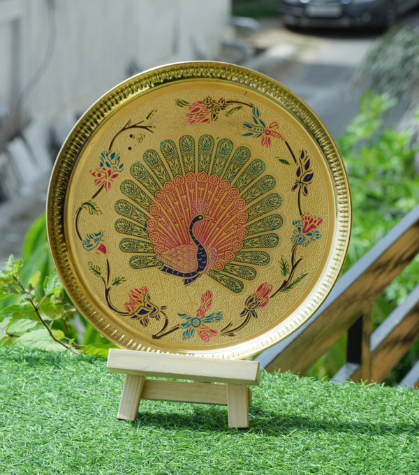 Pure Brass Dinner Plate | Thali Set for Pooja & Serving Purpose (Engraved printed peacock Design )