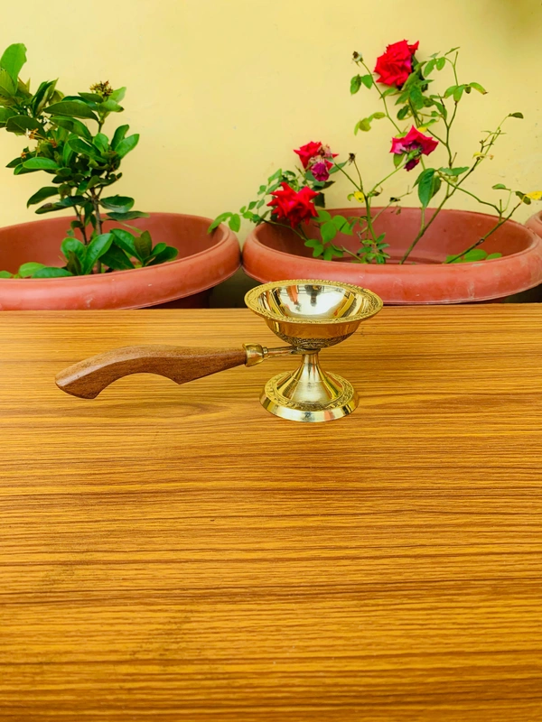 - This Sambarani stand for pooja is a brass stylish finishing showpiece.