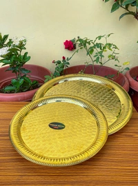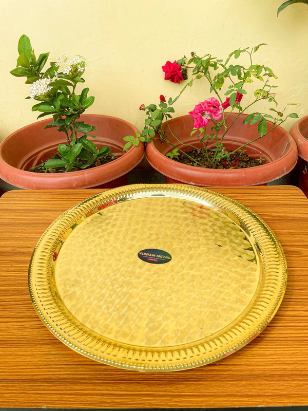 - Brass pooja Plates always from an important part of prayer rituals in the Hindu culture. They come in different designs too. This is a beautiful designed brass pooja plate, that has unique floral patterns engraved.