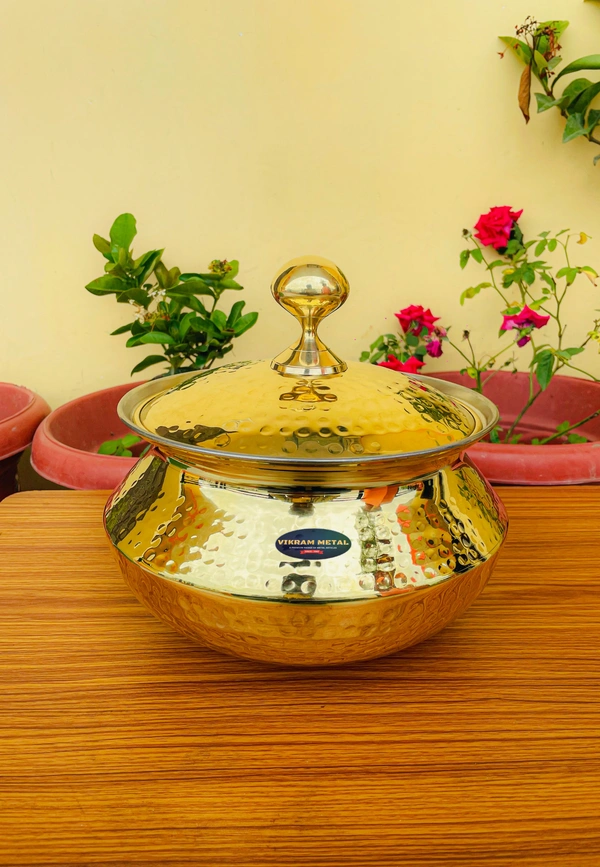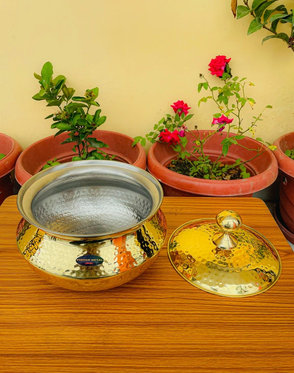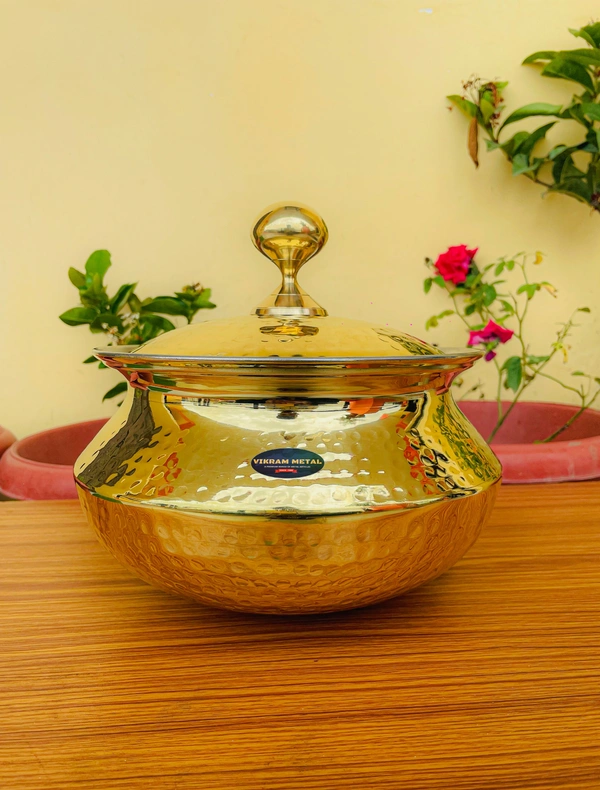 Brass Handi/Sipri with lid + Hammered Shinny Finish