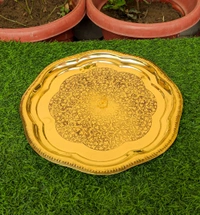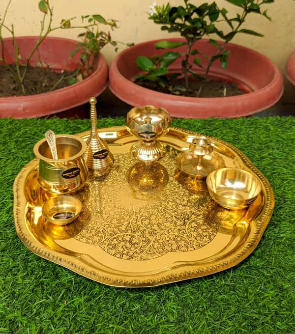 - πͺ This brass pooja thali looks very beautiful and use for the purpose of worship and for home decorative. It's designed to looks traditional stylish and inspiration from the day's of royal touch