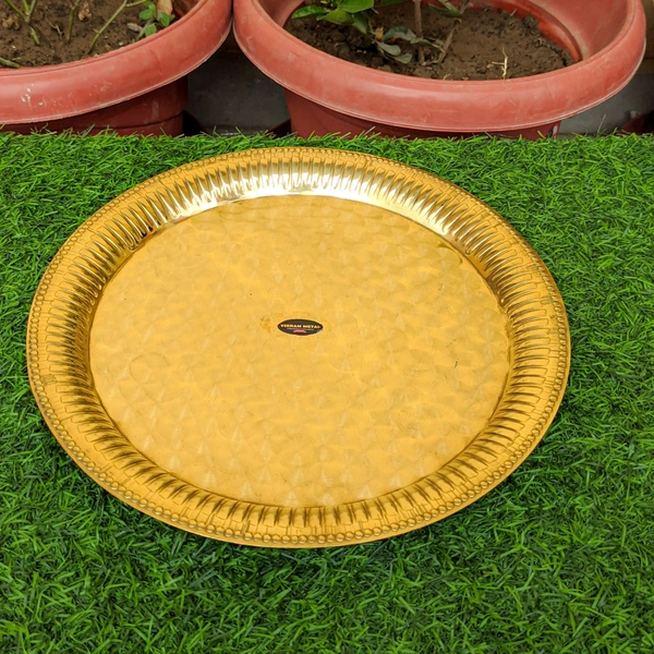 - πͺ This brass pooja thali looks very beautiful and use for the purpose of worship and for home decorative. It's designed to looks traditional stylish and inspiration from the day's of royal touch