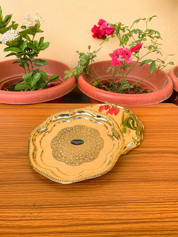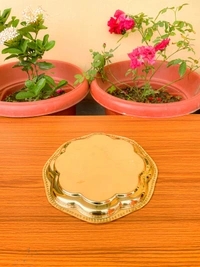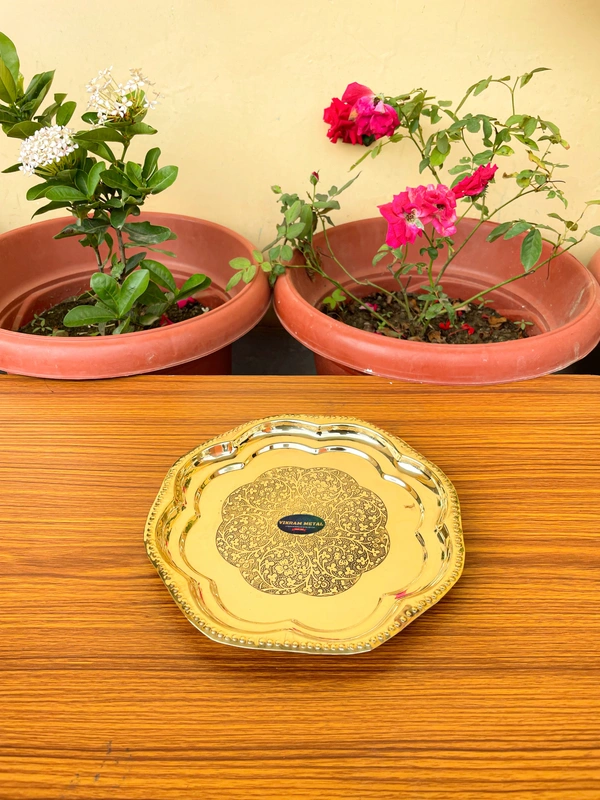Brass Puja Plate with Floral Embossed Design