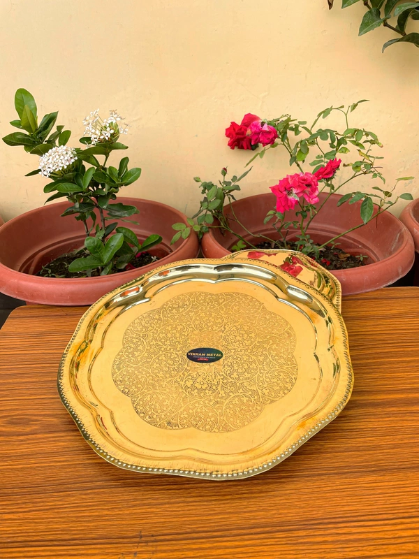 Brass Puja Plate with Floral Embossed Design