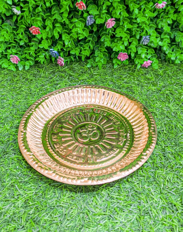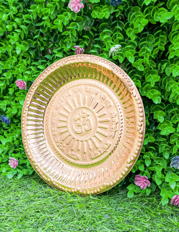 Copper pooja thali with Om Symbol and Gayatri Mantra Engraved